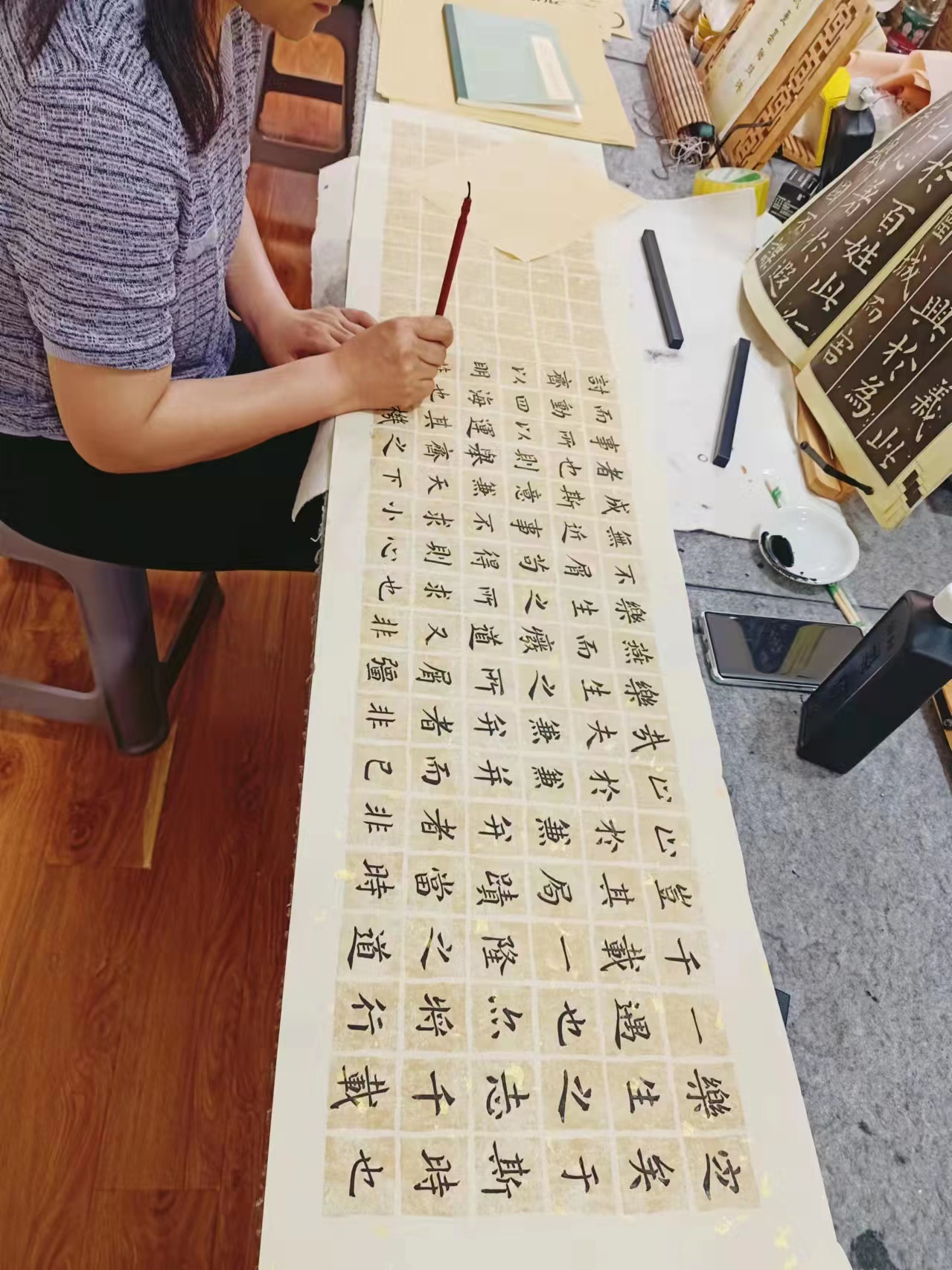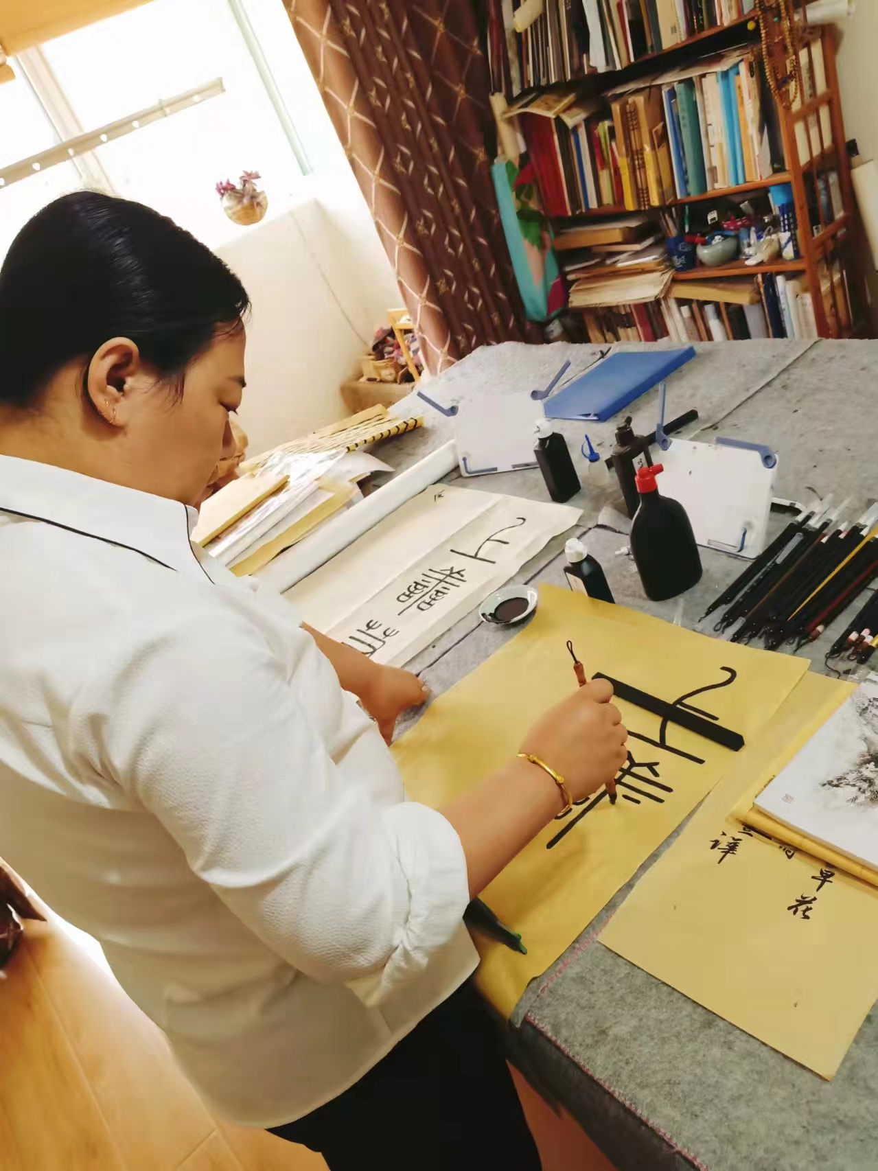 二、毛笔书法班(小班制)。书法是门艺术,无论学习什么,都要找对方法,方法对则事半功倍,我们教学方法有自己的特点,容易上手,一般情况下,孩童学习两三年,坚持不懈稳定学习的情况下都能达到书法等级考试较高级的水准,成人就更快一些。